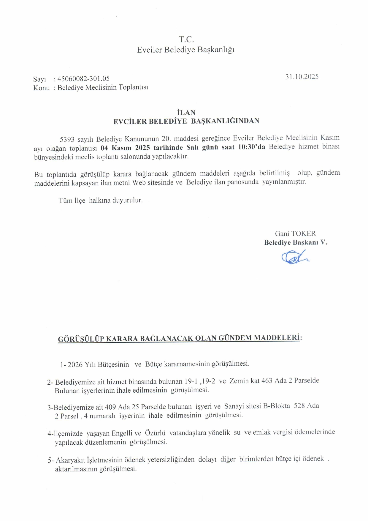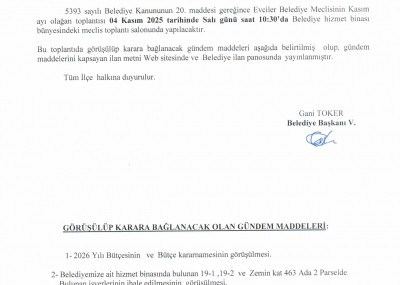 / 2025 KASIM AYI MECLİS TOPLANTISI GÜNDEMİ