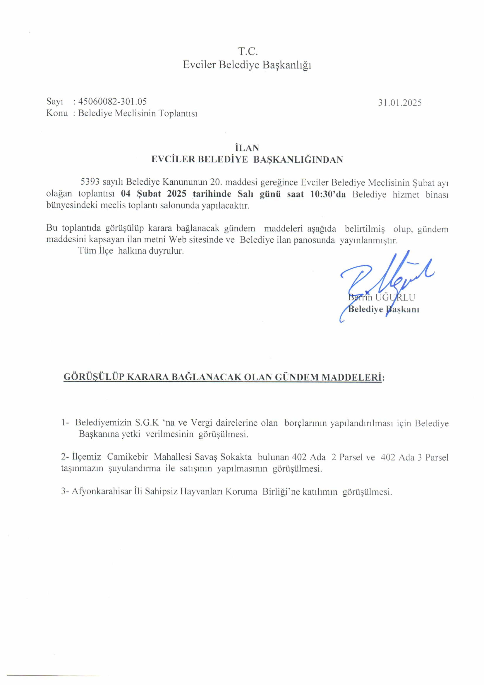 / 2025 ŞUBAT AYI MECLİS GÜNDEMİ