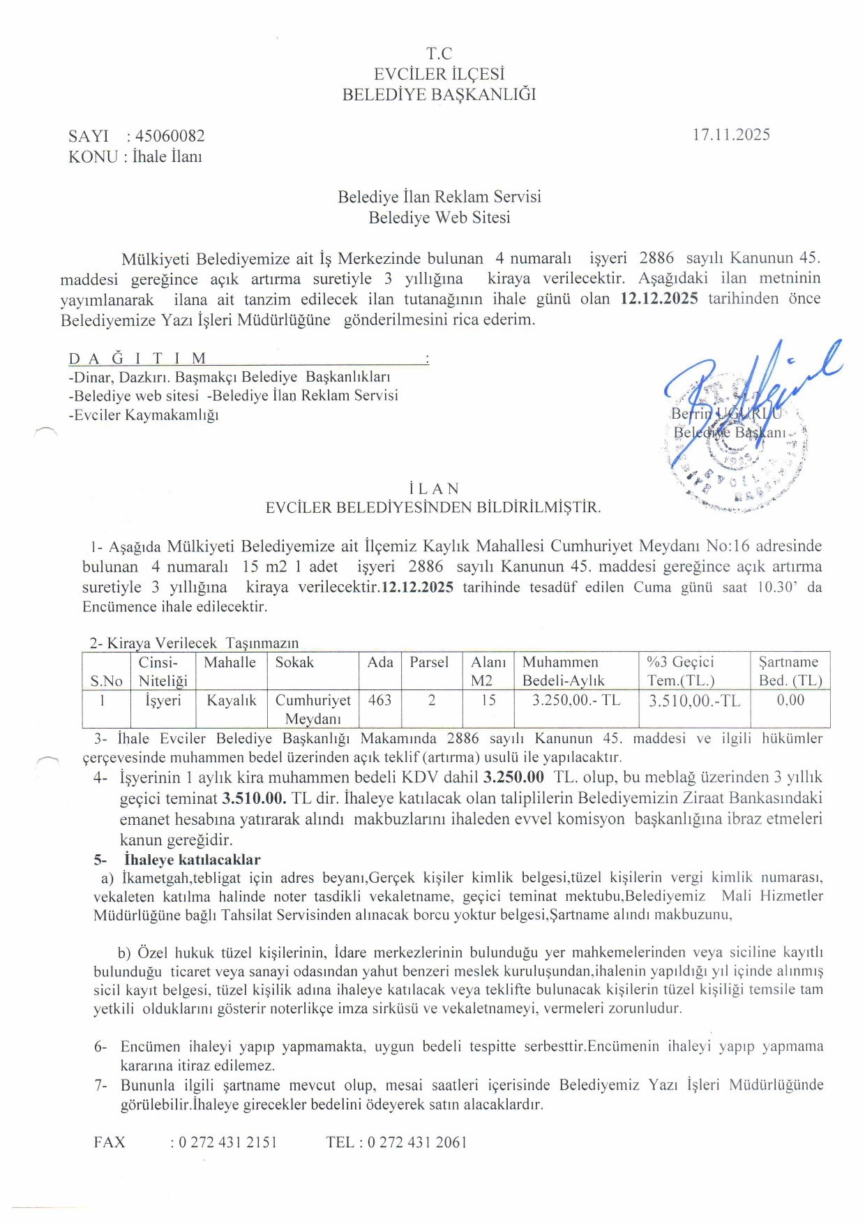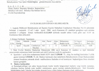 4 No İş merkezi İhale İlanı