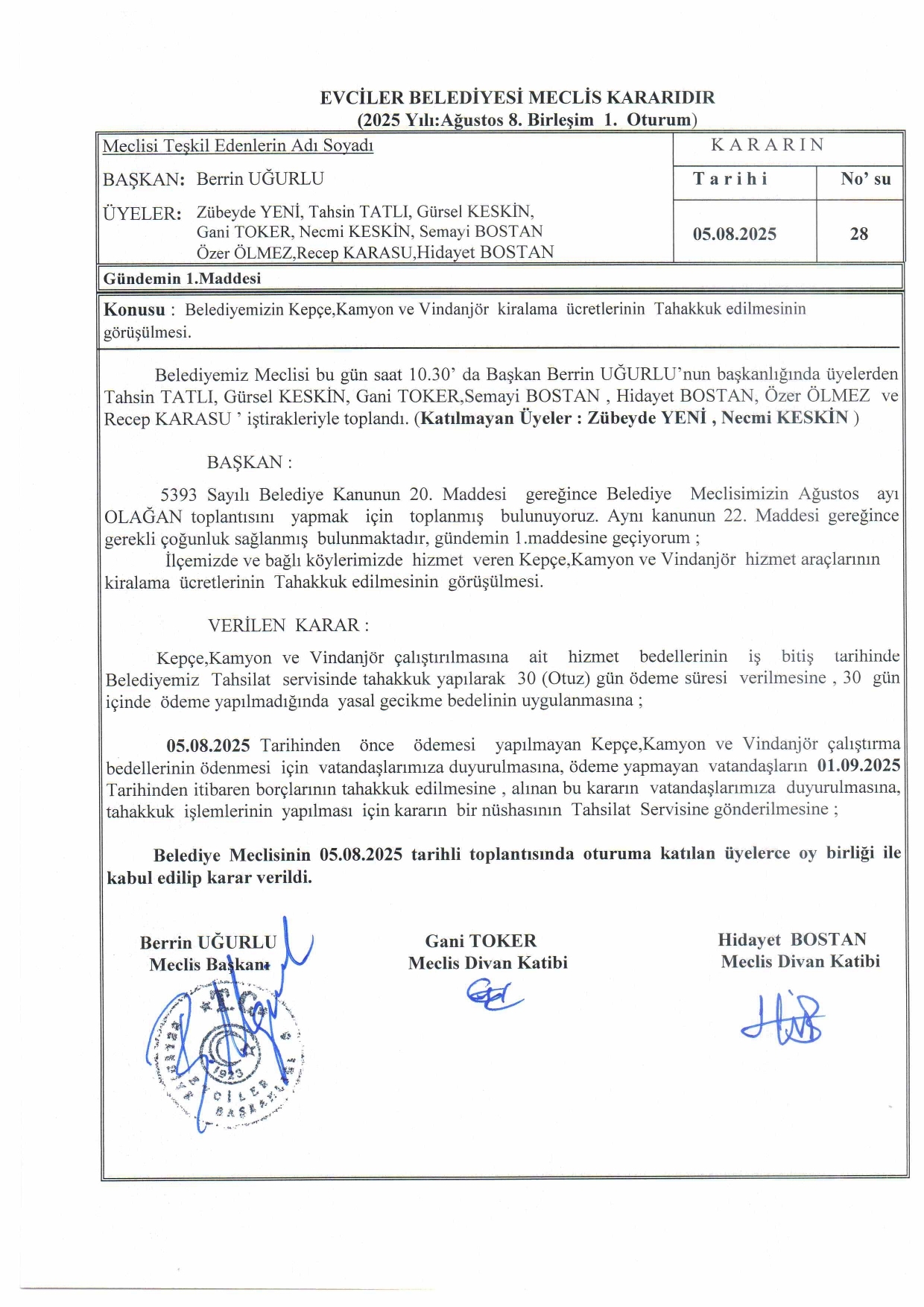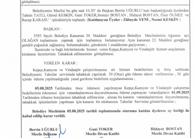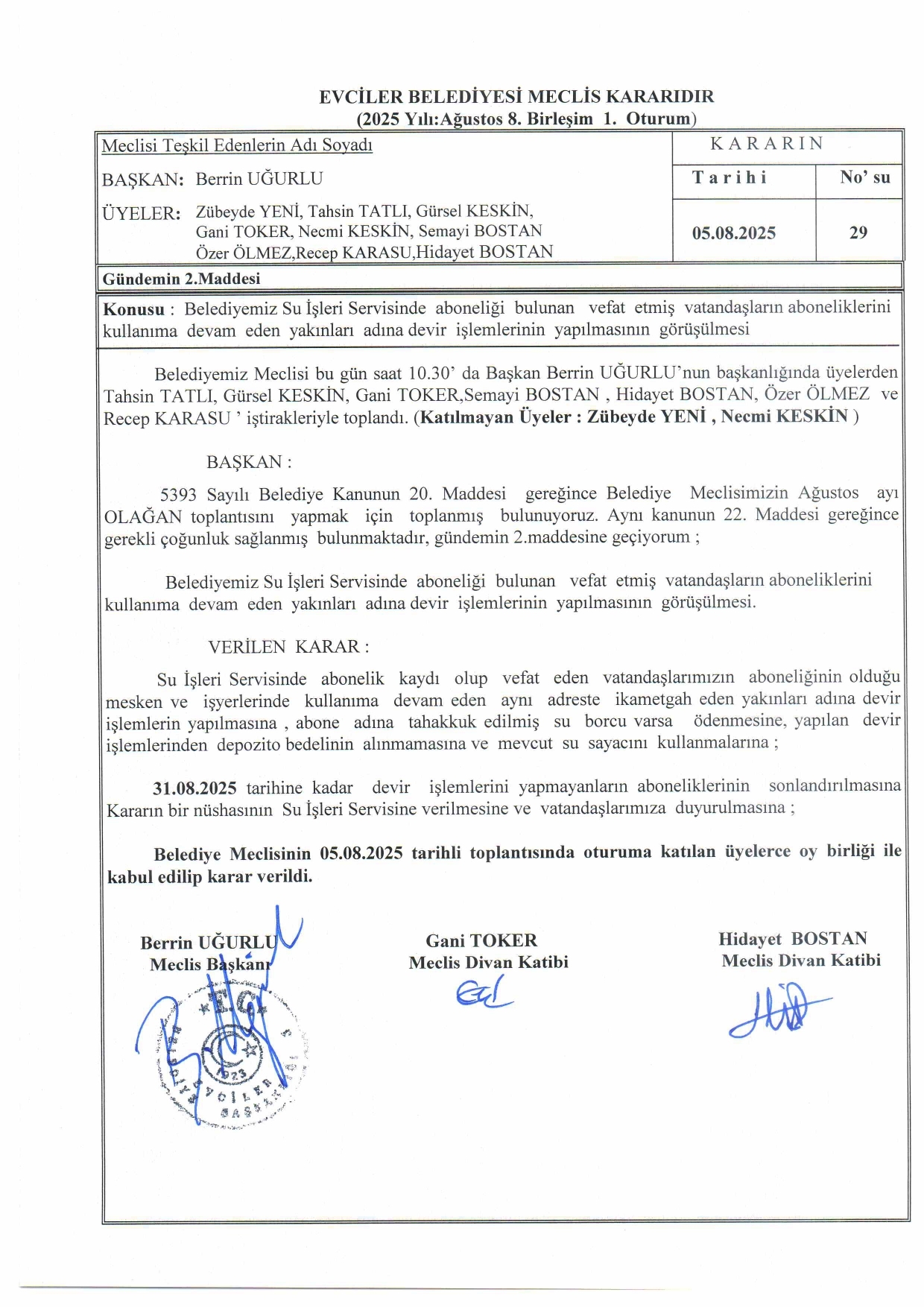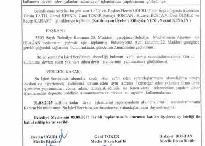 / AĞUSTOS AYI MECLİS KARARLARI