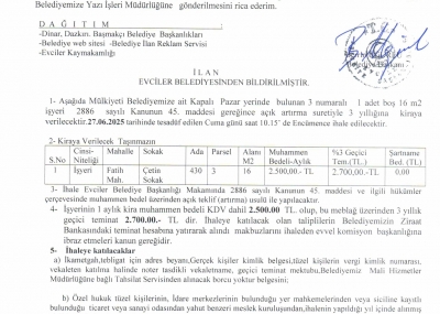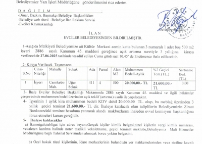 EVCİLER BELEDİYESİ İHALE İLANI
