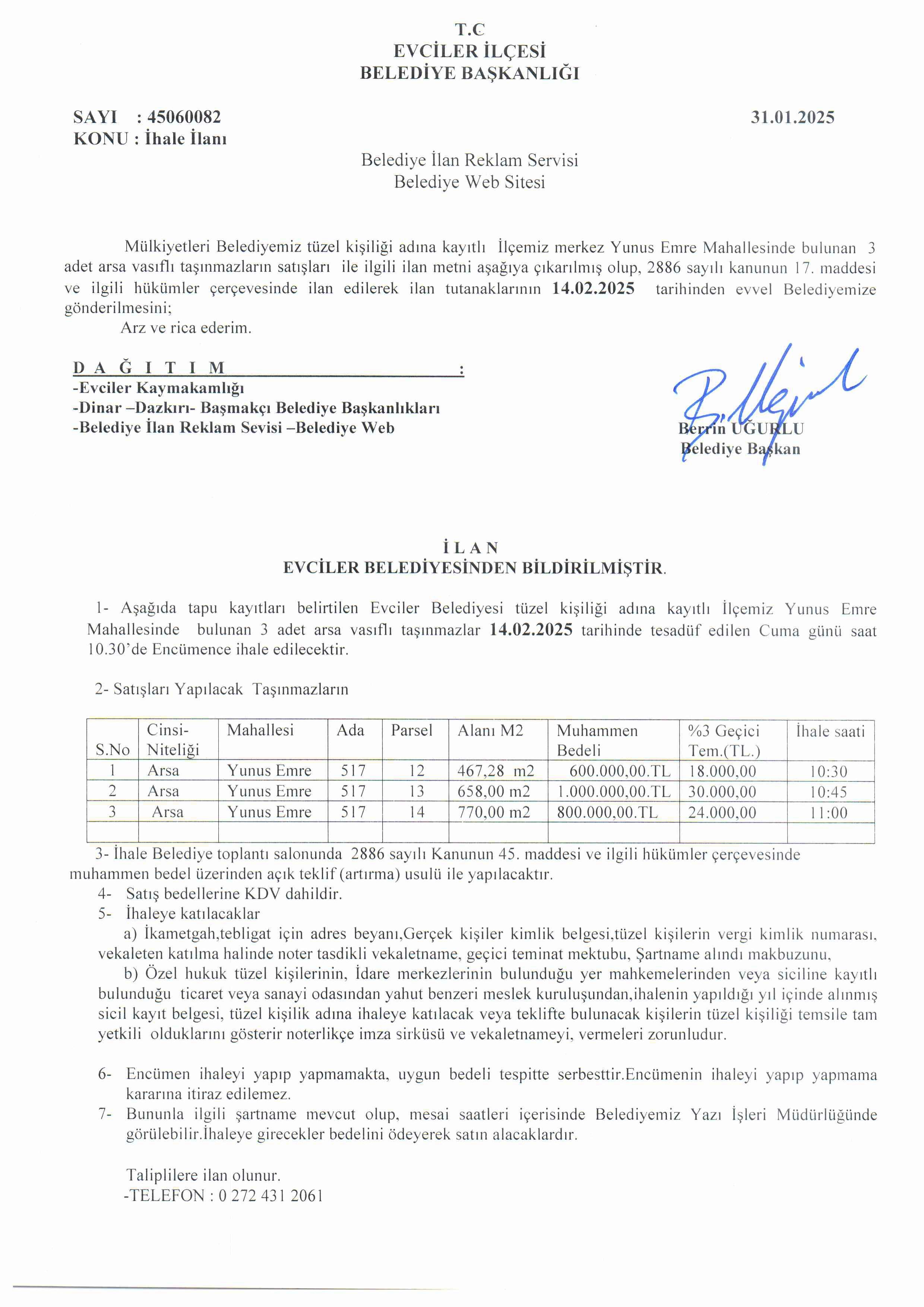 / İHALE İLANI_ARSA