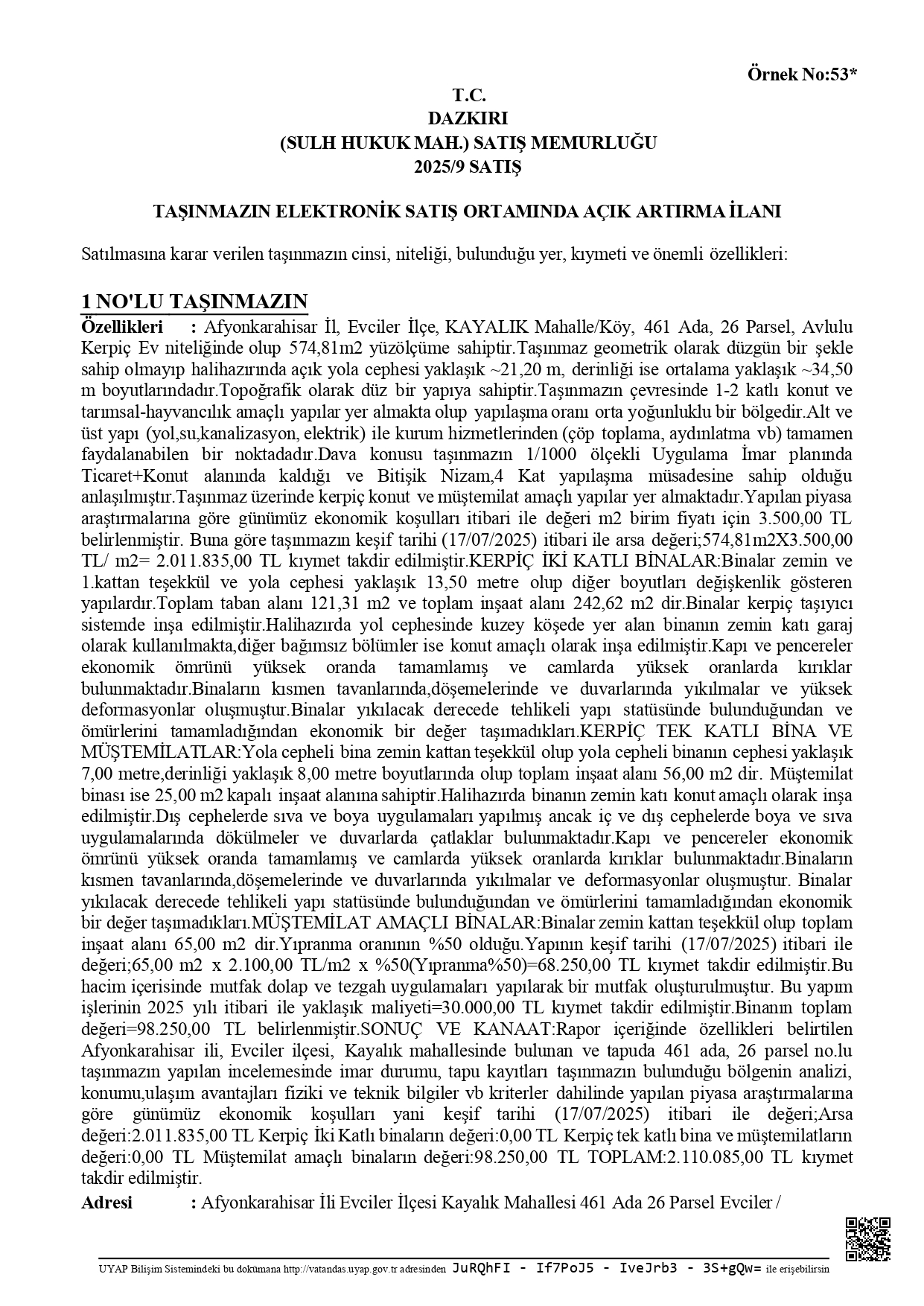 Oturma Yeri ve ya İş Adresi